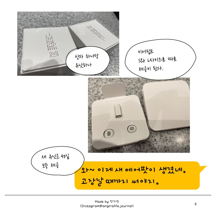 내 증상을 말하면서 에어팟을 보여드리니, 2020년 10월 이전에 제조된 제품이라는 걸 육안으로 바로 확인하셨다.
